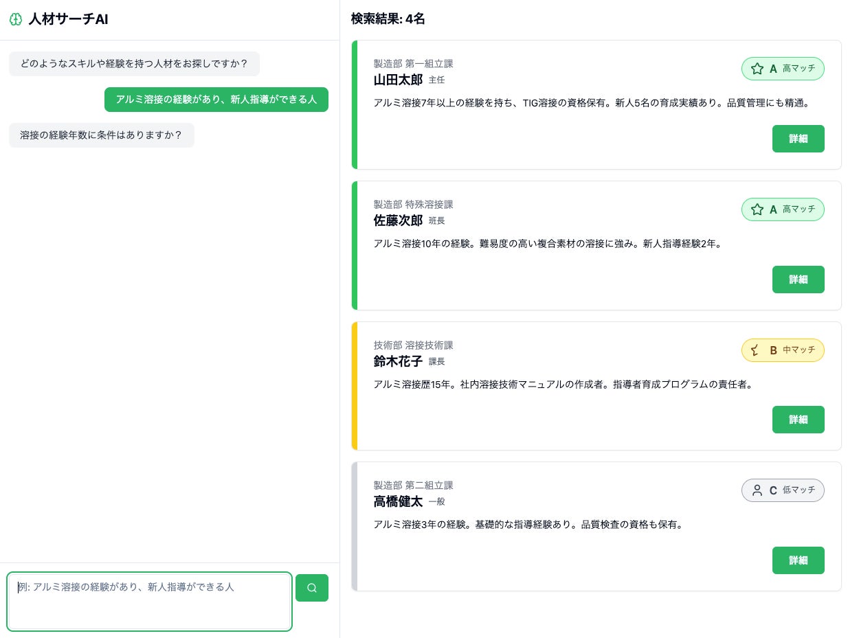 製造業のスキルマネジメントを牽引する株式会社Skillnote(本社 東京都千代田区、代表取締役 山川隆史)は、クラウド型スキルマネジメントシステム「Skillnote」に、従業員のスキルや資格、経験などの蓄積された高解像度のスキルデータベースから生成AIを活用して適任者を見つけ出す「人材サーチAI」機能を提供開始いたします。