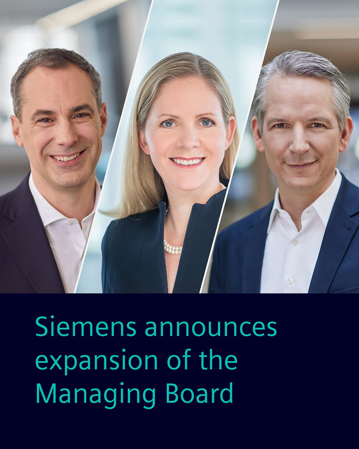 シーメンスAG代表取締役社長兼CEOであるローランド・ブッシュは次のように述べています。「財務、戦略、テクノロジーにおける素晴らしい経験と実績を持つヴェロニカとピーターを取締役に迎えることは重要な前進です。 セドリックとの契約延長により、オートメーションと産業用ソフトウェアにおける当社の強みをさらに発展させることができます。セドリックは、このビジネスにおける変革を続け、デジタル機能とサービスを拡大していきます。」