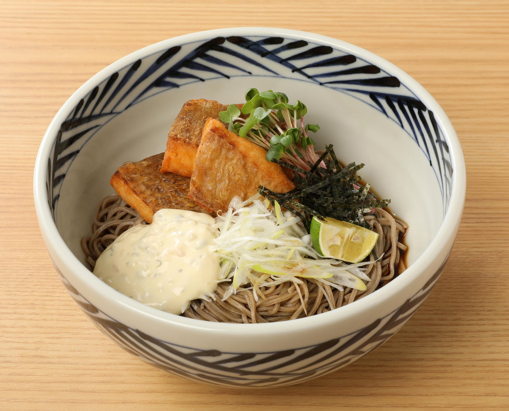 新たな門出などお祝い事の多い「春」。この時期にあわせて"天然真鯛"の唐揚げを使ったぶっかけそばをご用意しました。香ばしい食感の”鯛の唐揚げ”、自家製麺の”おそば”と、出汁がきいた”つゆ”。これらが三位一体となり、春の味を届けてくれます。さらにたっぷりのせたタルタルソースがベストマッチ!満足感のある一品です。