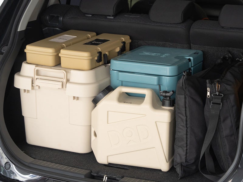 キャンプギアと一緒に積み込みやすいハードボックスを採用。
