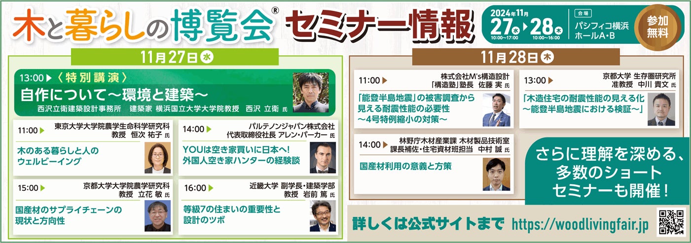 11/27(水)・28(木)木に関する製品・技術・情報を見て触れて学べる展示会 「木と暮らしの博覧会®」をパシフィコ横浜にて開催