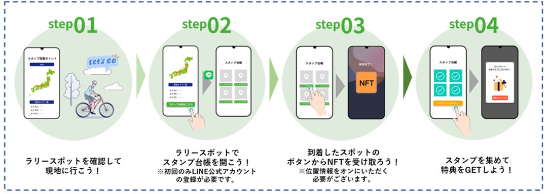 本イベントでは、NFTスタンプラリーを通して、つくば霞ヶ浦りんりんロードを訪れるきっかけづくりと地域の名所などを巡る回遊性の創出を目指します。またNFTを通した参加者との継続的な接点づくりにもチャレンジします。