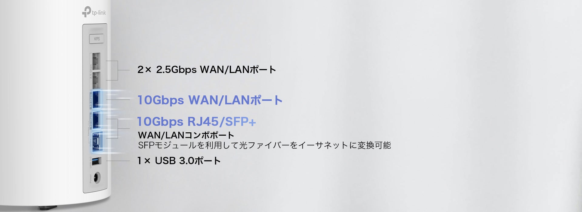*4:10Gbpsのインターネットスピードを利用するには対応したプランへの加入と、対応した機材が必要となります。全てのWAN/LANポートはWANもしくはLANポートとして動作しますが、同時にWANポートとして利用できるポートはいずれか1つだけです。