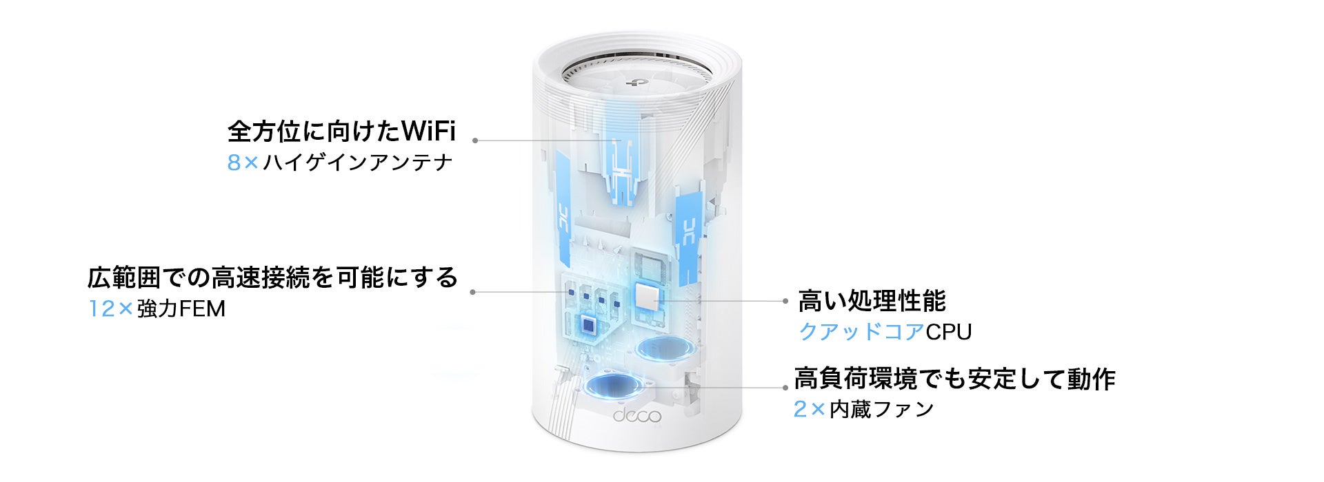 「Deco BE85」は、Wi-Fi 7技術を最大限に活用するため、細部にまでこだわって設計されています。
