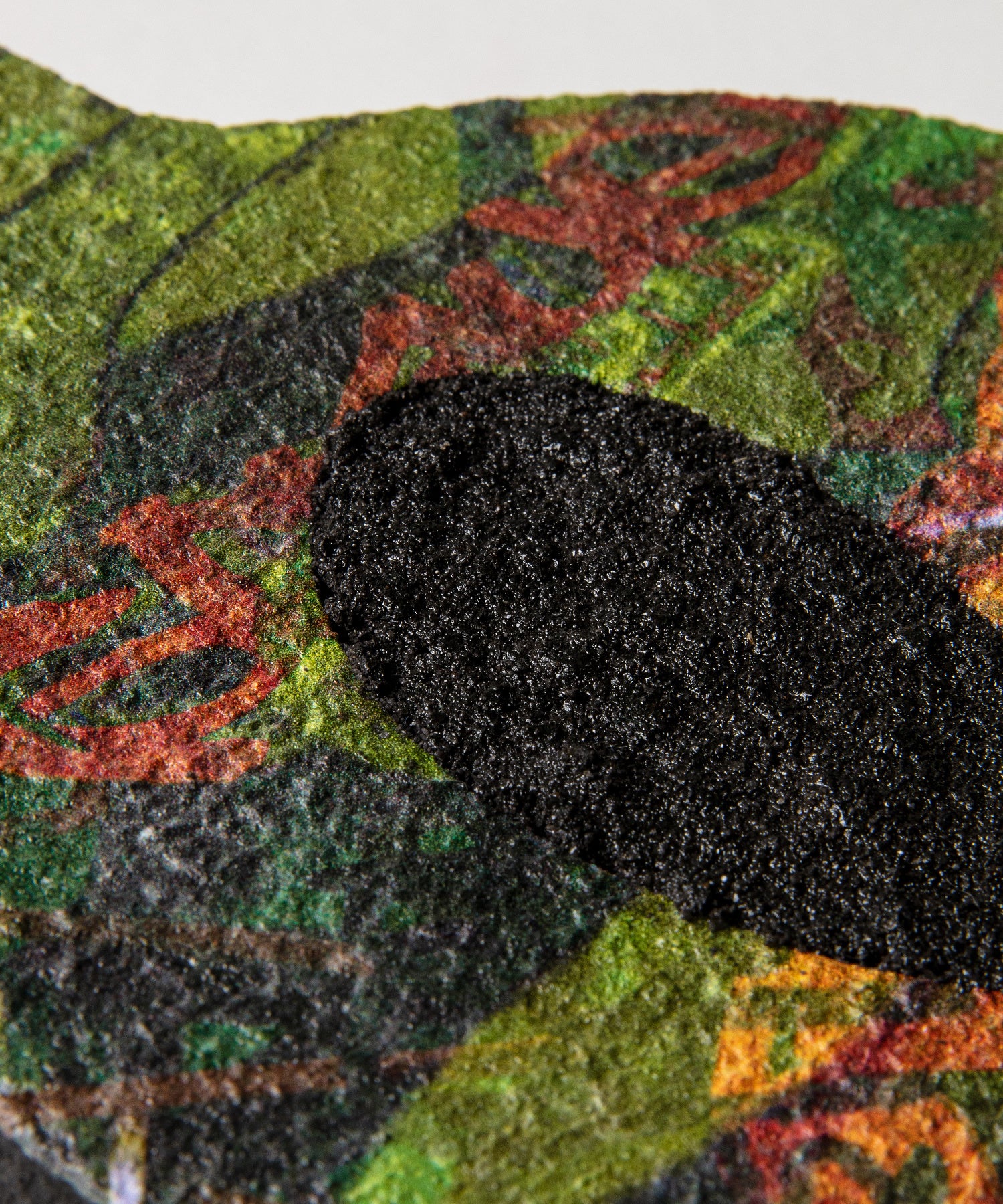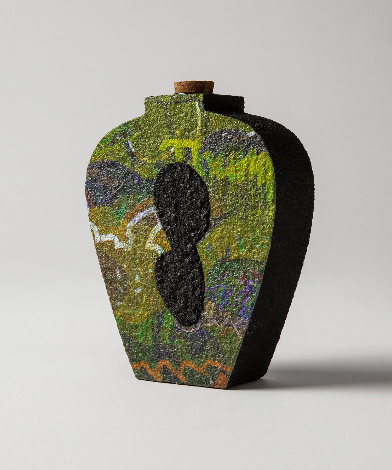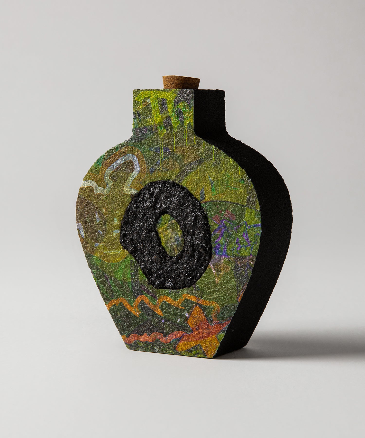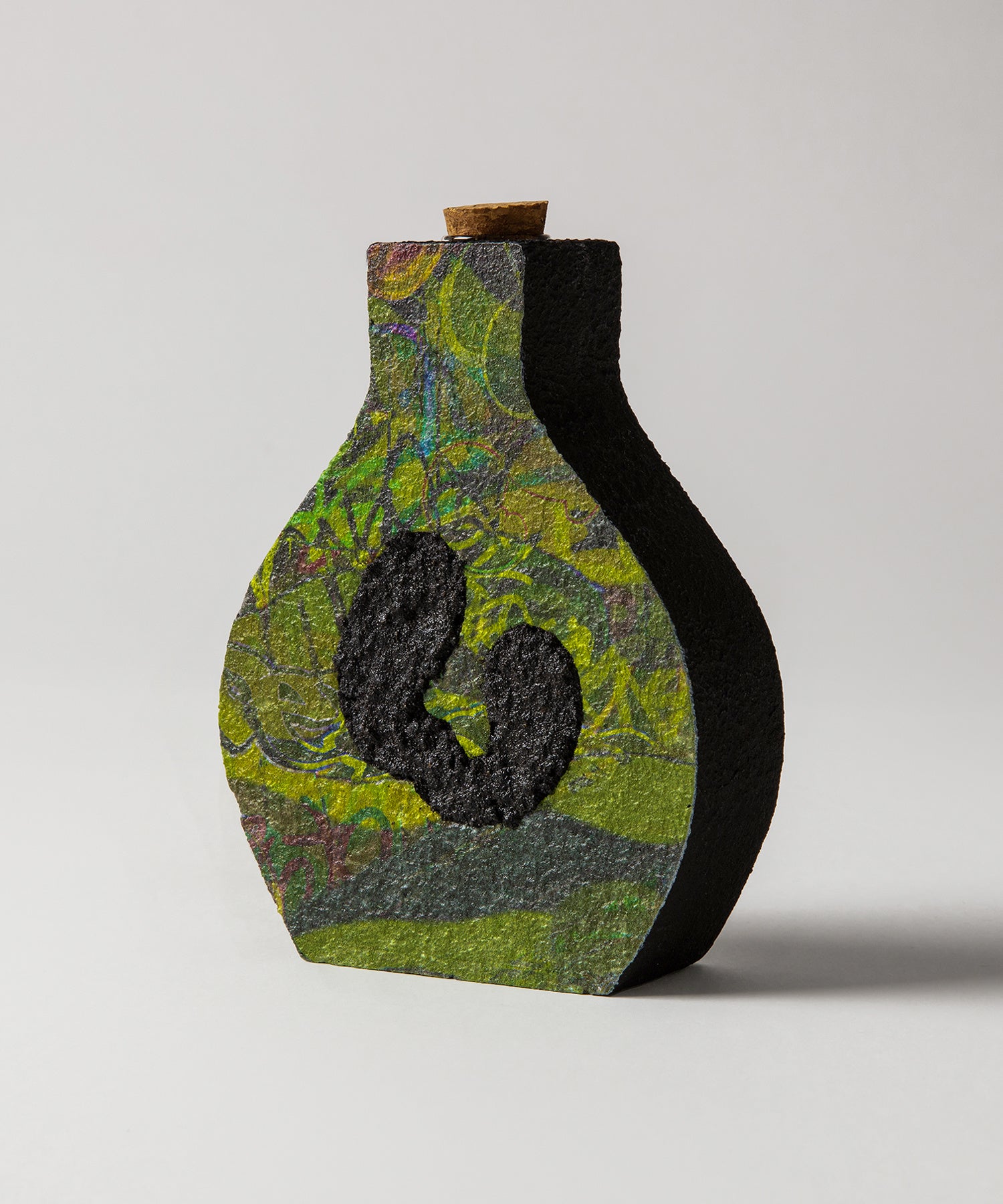 一輪挿しはプロダクトとして実用性を保ちつつ、グラフィティ、アスファルト、植物を迷彩柄を用いて一つに集約しました。タイトルは‟Graffiti” ‟Asphalt” ‟Plant”の頭文字を取り、またgapという単語が、道路や壁の割れ目から生える植物と親和性があることから‟GAP vase”と名付けました。