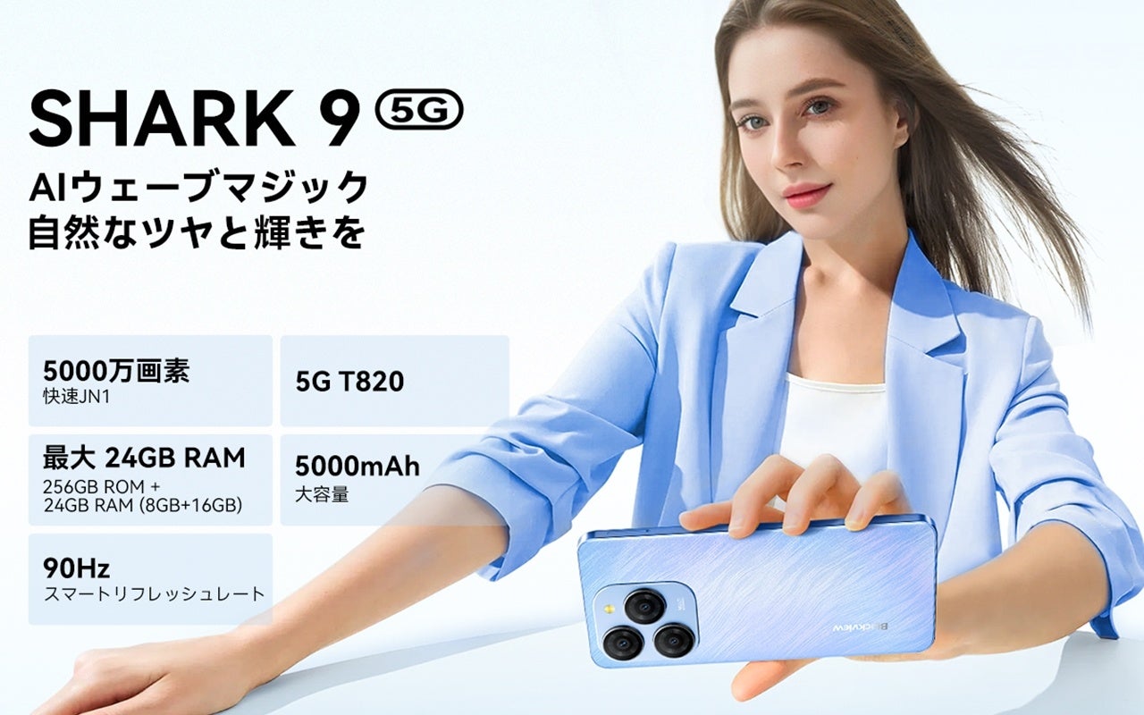 最新格安スマホ『Blackview SHARK 9』発表!112.99ドルの早期割引価格で購入可能!90Hz/Unisoc T820/Android14/24GB+256GB/5G対応/50MPカメラ