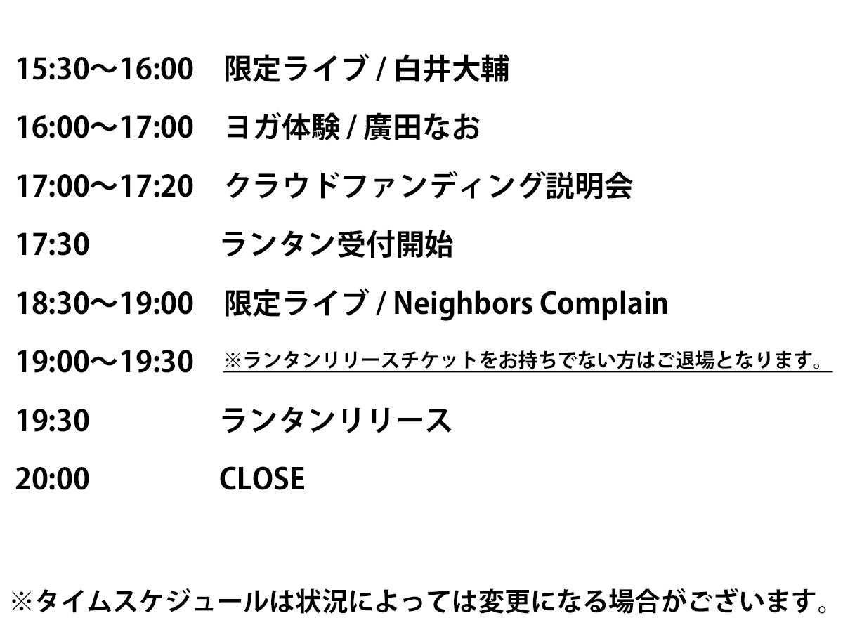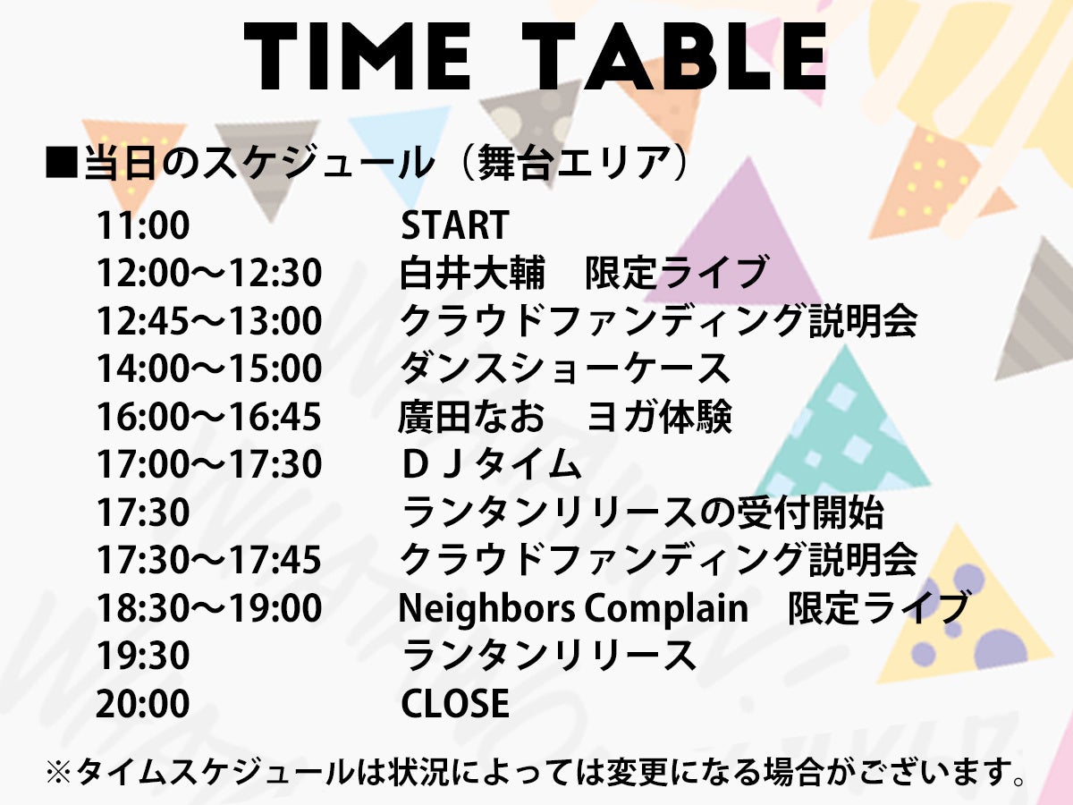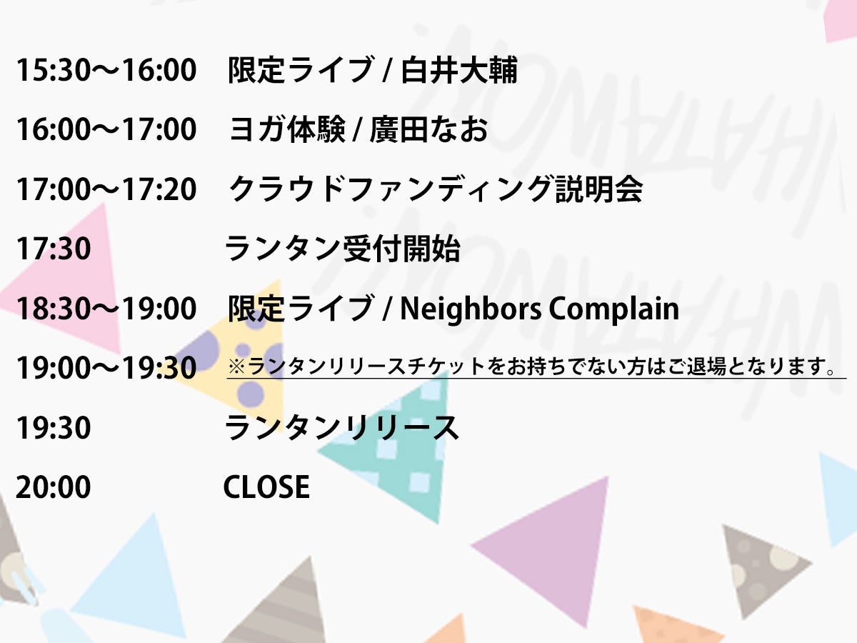 ■ 日程:3月5日(日) 開場 11:00 / 受付 18:30 / ランタンリリース 19:30