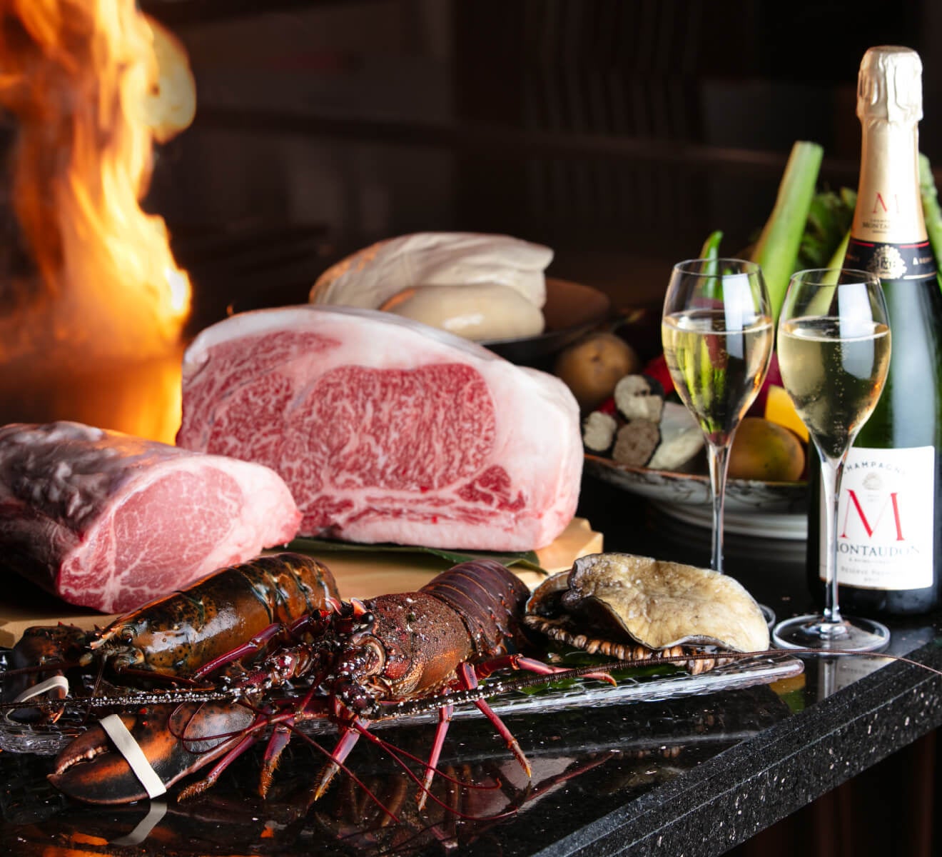 目の前で焼き上げる鉄板カウンターならではの美味。豪華食材を使用した晴れやかなコース。