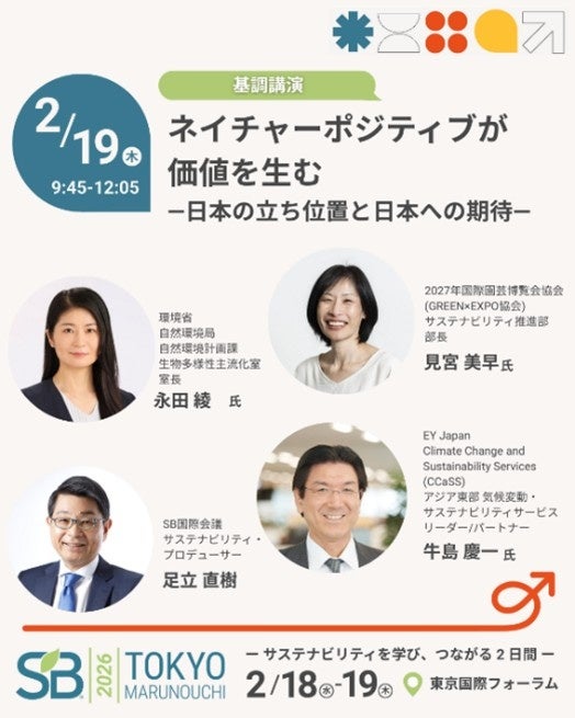 GREEN×EXPO協会(正式名称:公益社団法人2027年国際園芸博覧会協会、会長:筒井義信、所在地:横浜市中区)は、2026年2月18日(水)、19日(木)に開催される「第10回 サステナブル・ブランド国際会議 2026 東京・丸の内」(注1)(主催:株式会社Sinc / Sustainable Brands, PBC)(以下、SB国際会議)に参加します。プレナリーセッションへの登壇、オープンセミナーの主催とともに「FRaU S-TRIP 特別号」記事掲載を通して、GREEN×EXPO 2027が生み出すサステナビリティの可能性を考え、伝え、参加者とともにその可能性を追求いたします。