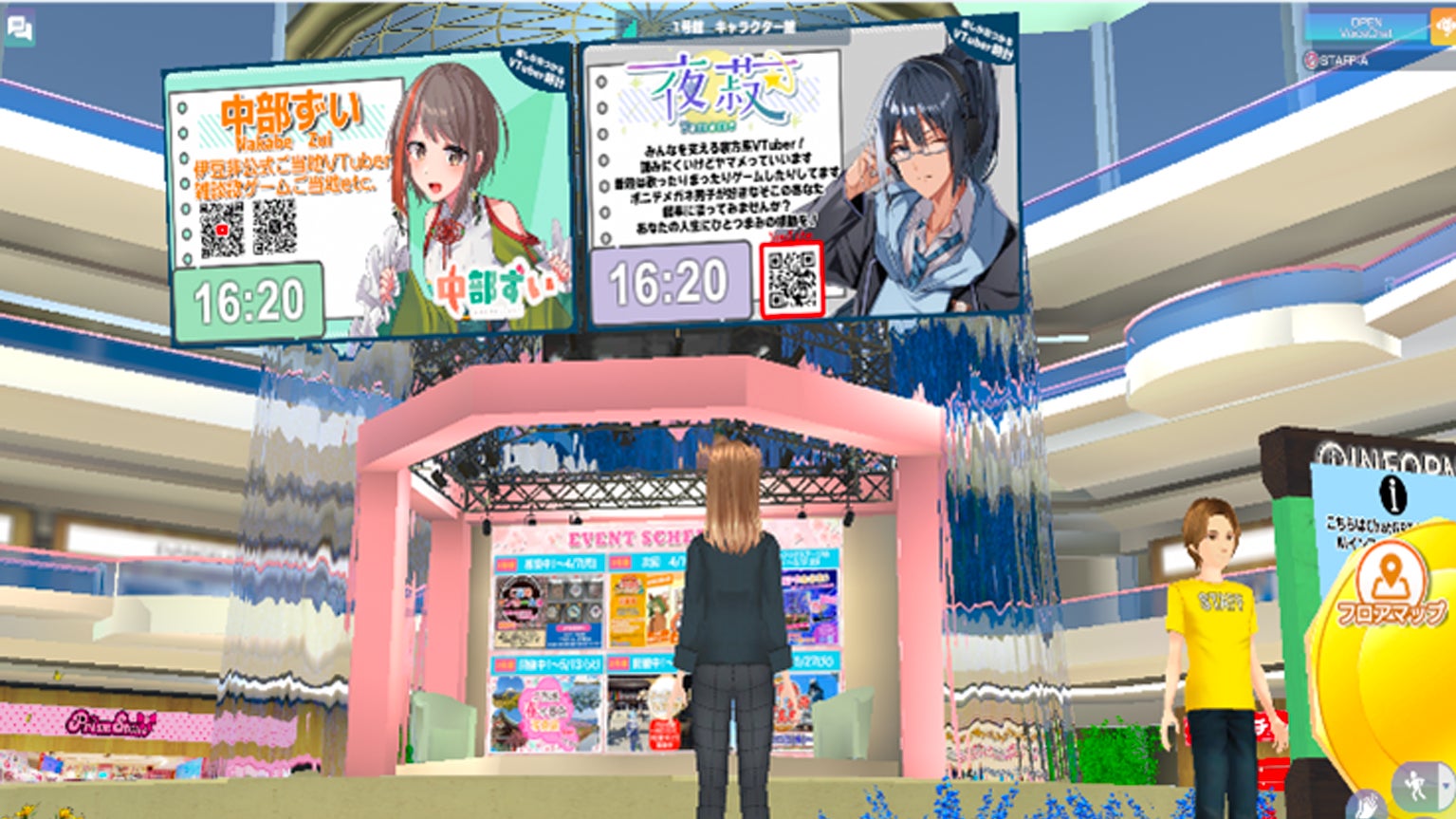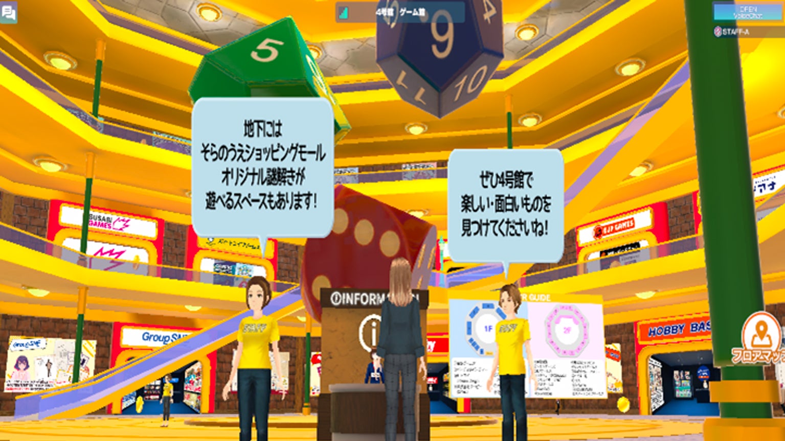 スマートフォンやパソコン、タブレットなどからアプリ無しでもログインし、アバターを操作することで、オンラインショッピングやライブイベントなどが楽しめるメタバースの商業施設です。キャラクターショップが集積された1号館、神保町の古書店、神田カレーグランプリ受賞店、お茶の水楽器店などが集積された2号館、47都道府県のご当地VTuberが方言で応援大使を務めるお店が集積された3号館、ゲームショップが集積され、謎解きや人狼が楽しめるゲームプレイフロアやダンジョンゲームなどもある4号館、イラストレーター、デザイナー、アーティストなどのお店が集積された5号館等、現在200店舗以上のお店や、写真展会場、イベント会場などが展開されています。