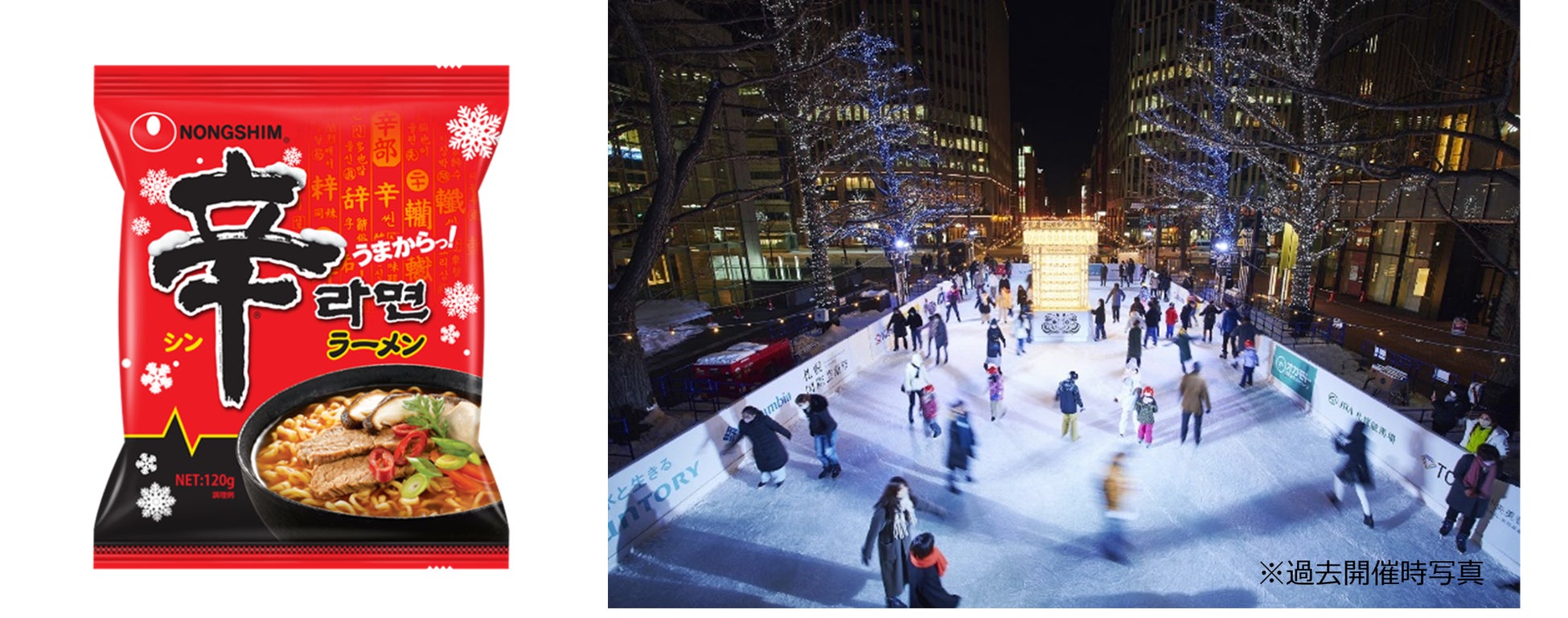 さらに発売を記念して、雪にちなんだ企画として「さっぽろ雪まつり」(北海道札幌市)にて同時開催されるスケートリンク「スマイルリンクさっぽろ」に初協賛し、過去最大級の無料試食会などでおもてなしをします。また、今シーズンの初雪を確認できたスキー場にて辛ラーメンを先着順でプレゼントするキャンペーンも実施するなど、今冬は「雪」をキーワードにした「共演」を全国各地で繰り広げます。