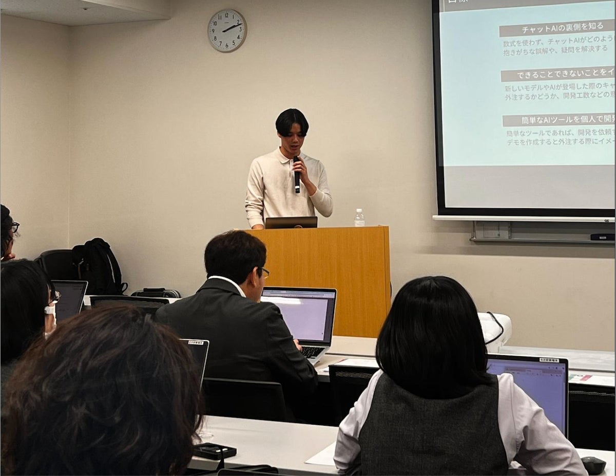 本ワークショップは、生成AIの基礎的な活用経験を持つ方を対象に、さらに一歩進んだ応用的な活用法をハンズオン形式で学ぶ機会として企画されました。企業が無料で利用できるAIツールを活用し、「チャットAIの仕組みを知る」座学から「オリジナルのチャットボットを作る」実践まで、業務改善に直結するAIツールの内製化を支援することを目的としました。