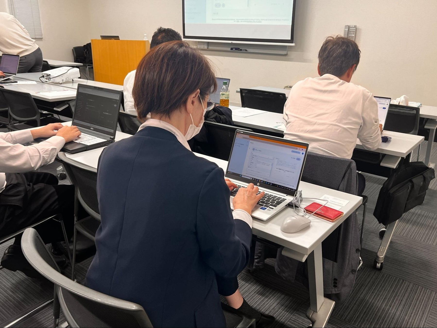 ワークショップでは、参加者が実際に手を動かし、自社の業務を効率化するための「チャットボット」を作成する体験を行いました。「使う上での注意点は何か?」「セキュリティ面での懸念は?」など、作成したチャットボットを実際の業務へ適用するための具体的な質問が多数飛び交い、参加者の業務改善への熱量の高さがうかがえました。