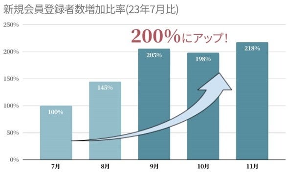 *新規会員登録者数23年7月期比、23年9月205%、23年10月198%、23年11月218%