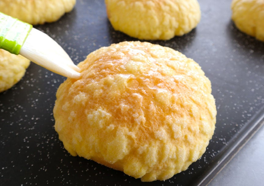 累計販売個数170万個!北海道産小麦とバターをたっぷり使用し、外側はサクサク、中はふわふわに焼き上げたペンギンベーカリーで1番売れてる人気商品。(※1) 仕上げに溶かした北海道バターをたっぷりとかけていくので、ひと口食べるごとに香ばしバターの香りを楽しんでいただけます。