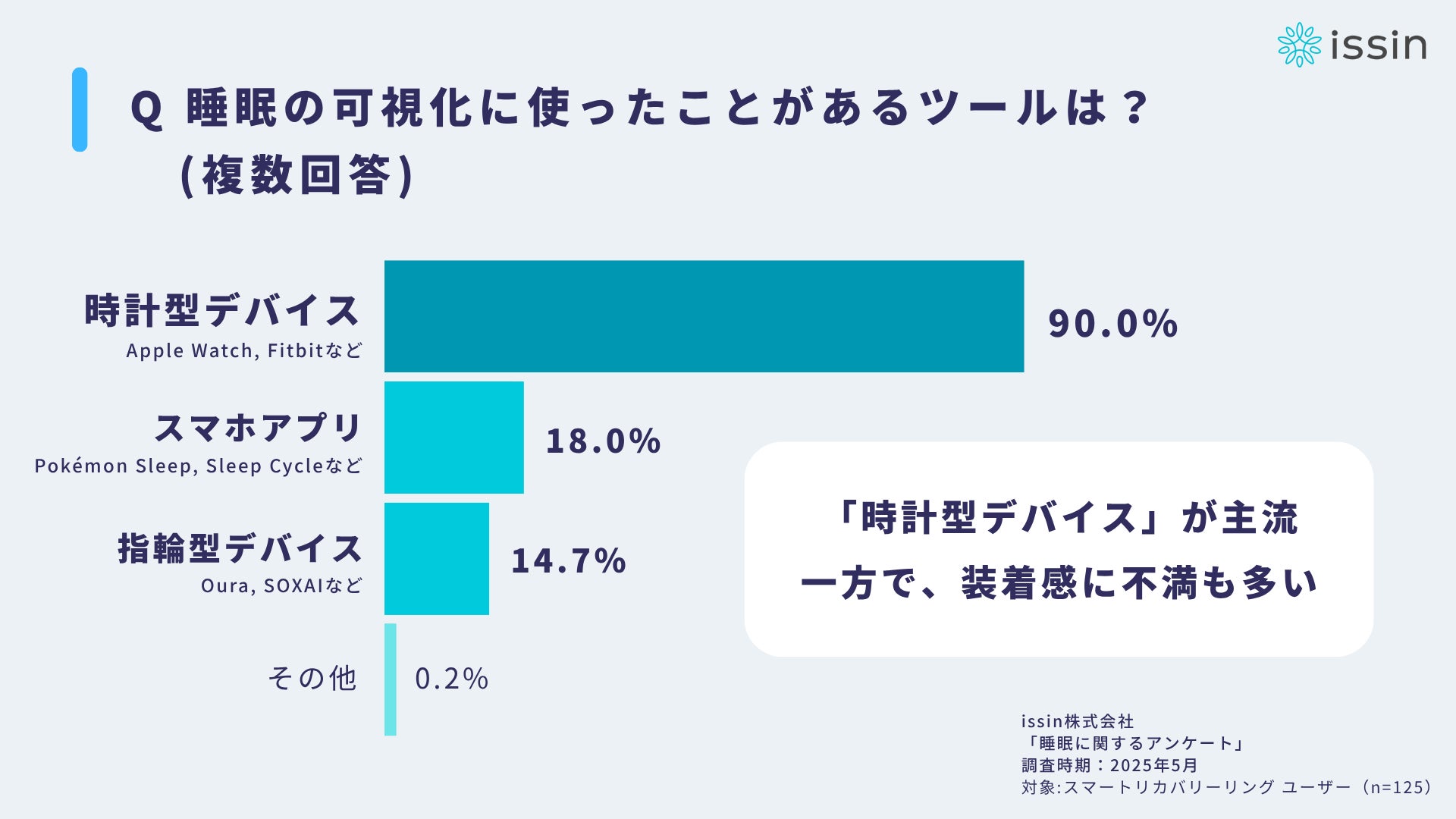 【2】睡眠の可視化を行った約9割が「時計型デバイス」を使用する一方、装着の煩わしさで挫折する人も