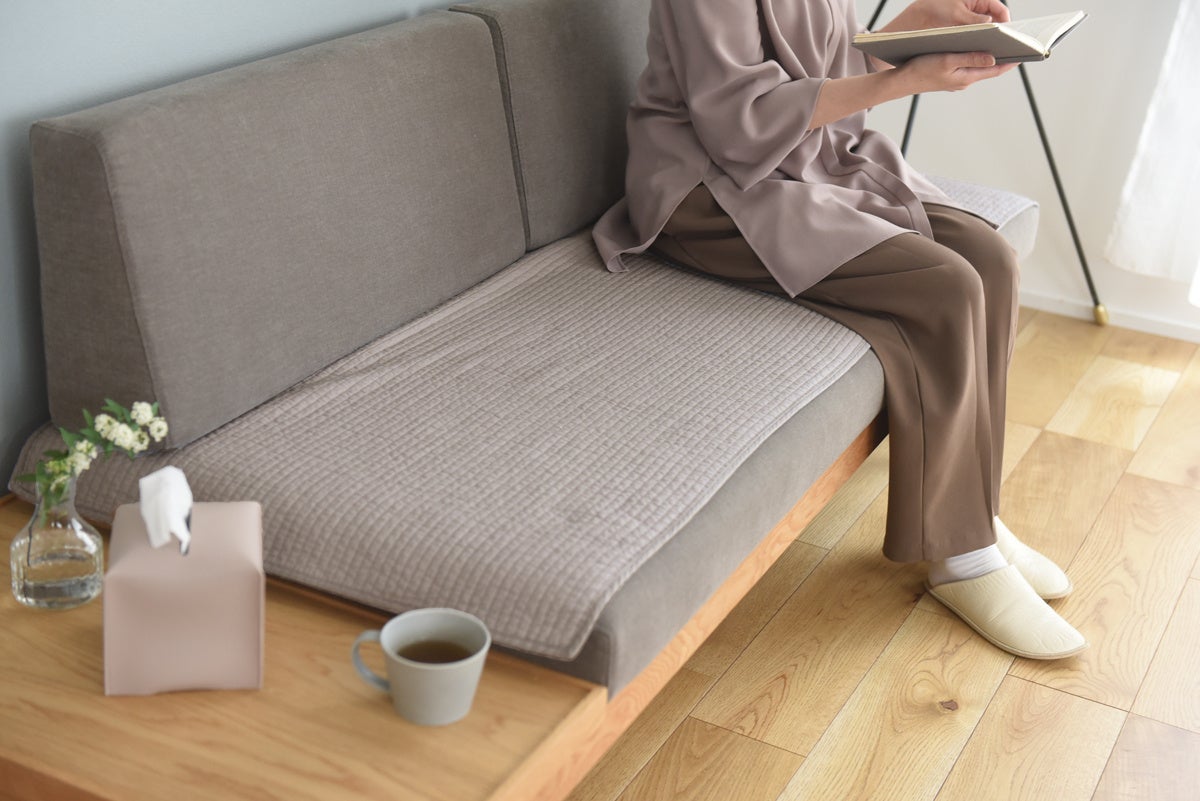 また、革張りなどの滑りやすいソファに敷きやすいのもポイント。