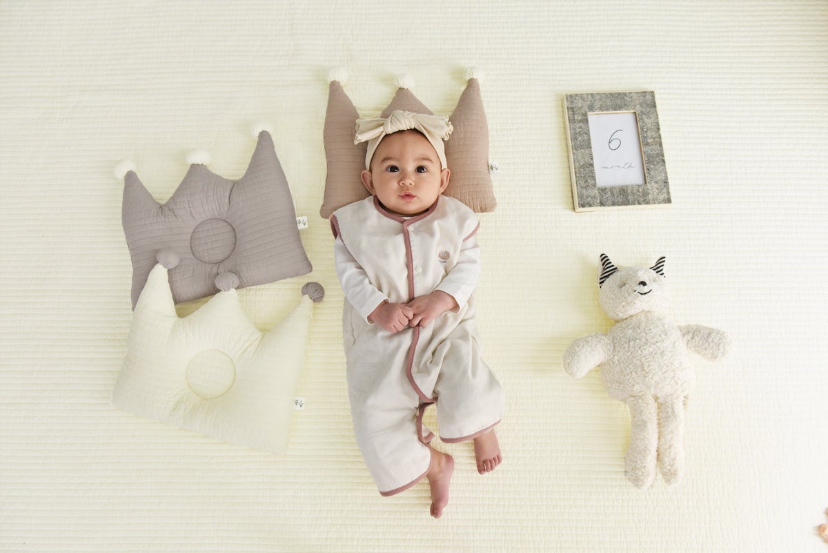 赤ちゃんを寝かせれば、その愛らしさがさらに倍増!写真を撮ってSNSにアップしたり、誰かに見せたくなるような枕です。
