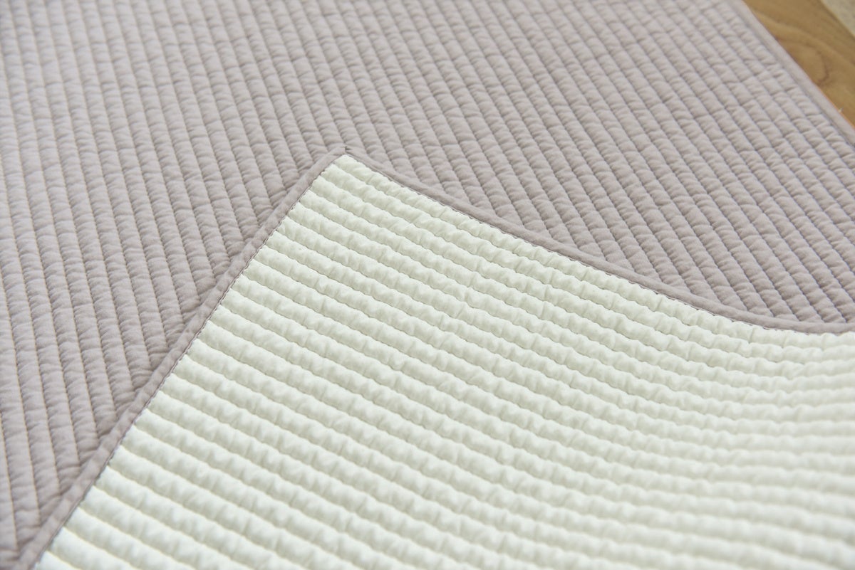 ポコポコとしたキルティングが絵になる、SNSでも人気のイブル素材。アンジェ web shopでは、イブルのフロアマット2サイズ、ソファパッド、抱っこ布団、王冠まくらの全5アイテムを一挙発売します。