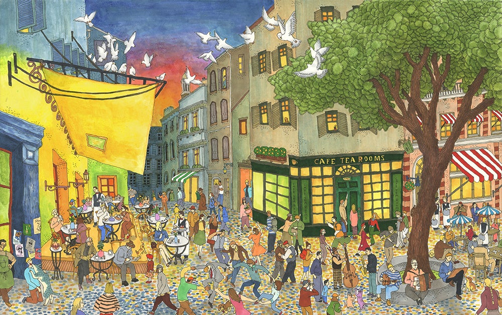名画をモチーフに描くことが多いタイチの作品には、いつも温かな、そして日常の幸せが溢れていて、常にファンを増やし続けています。