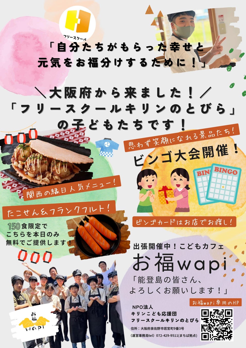 イベント名:子ども食堂キリンの家「お福wapi」で被災地を応援! in石川県能登島
