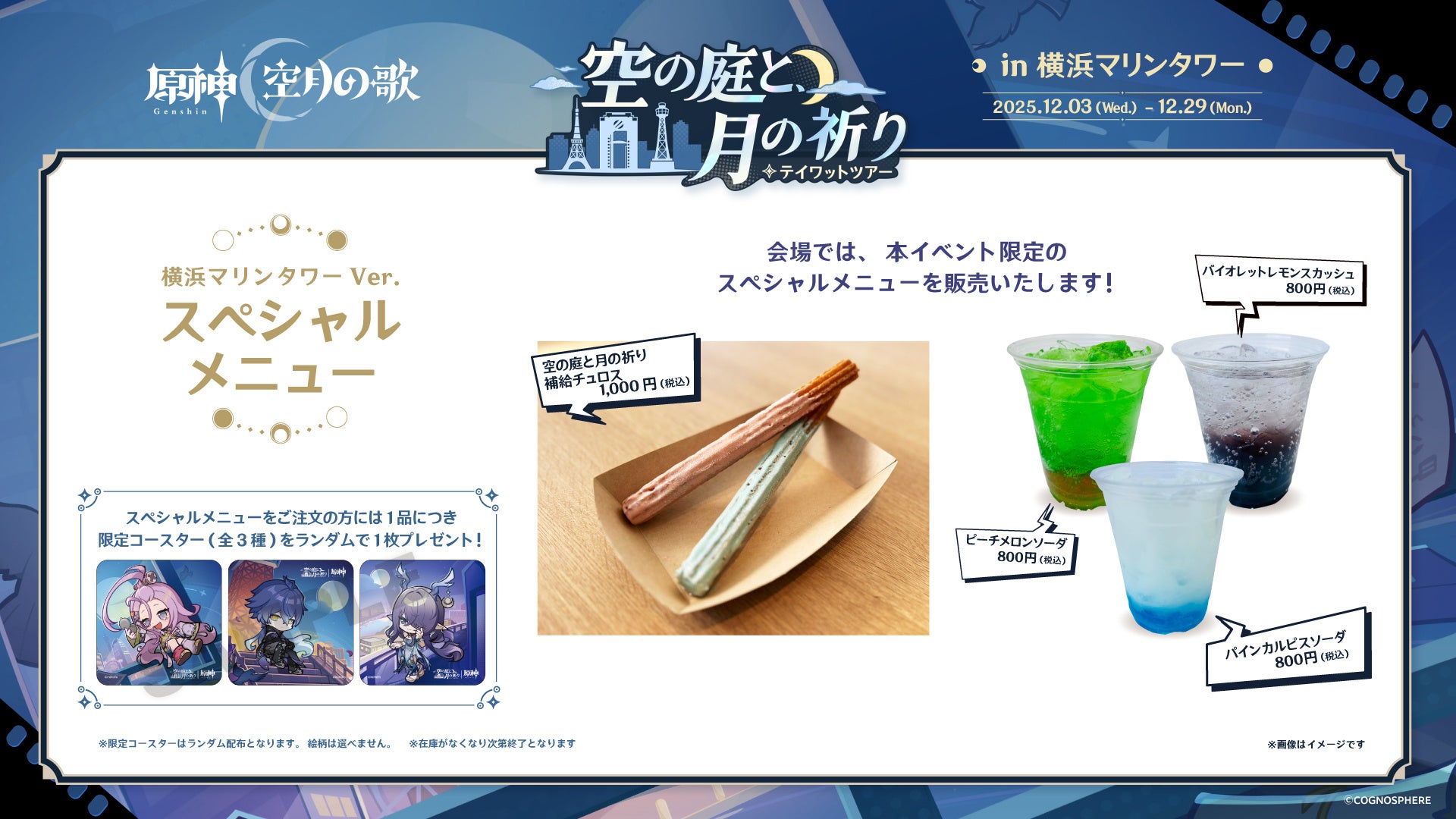 「原神 テイワットツアー ‐空の庭と、月の祈り‐」キャンペーン開催でチケット、グッズ、飲食メニュー販売!