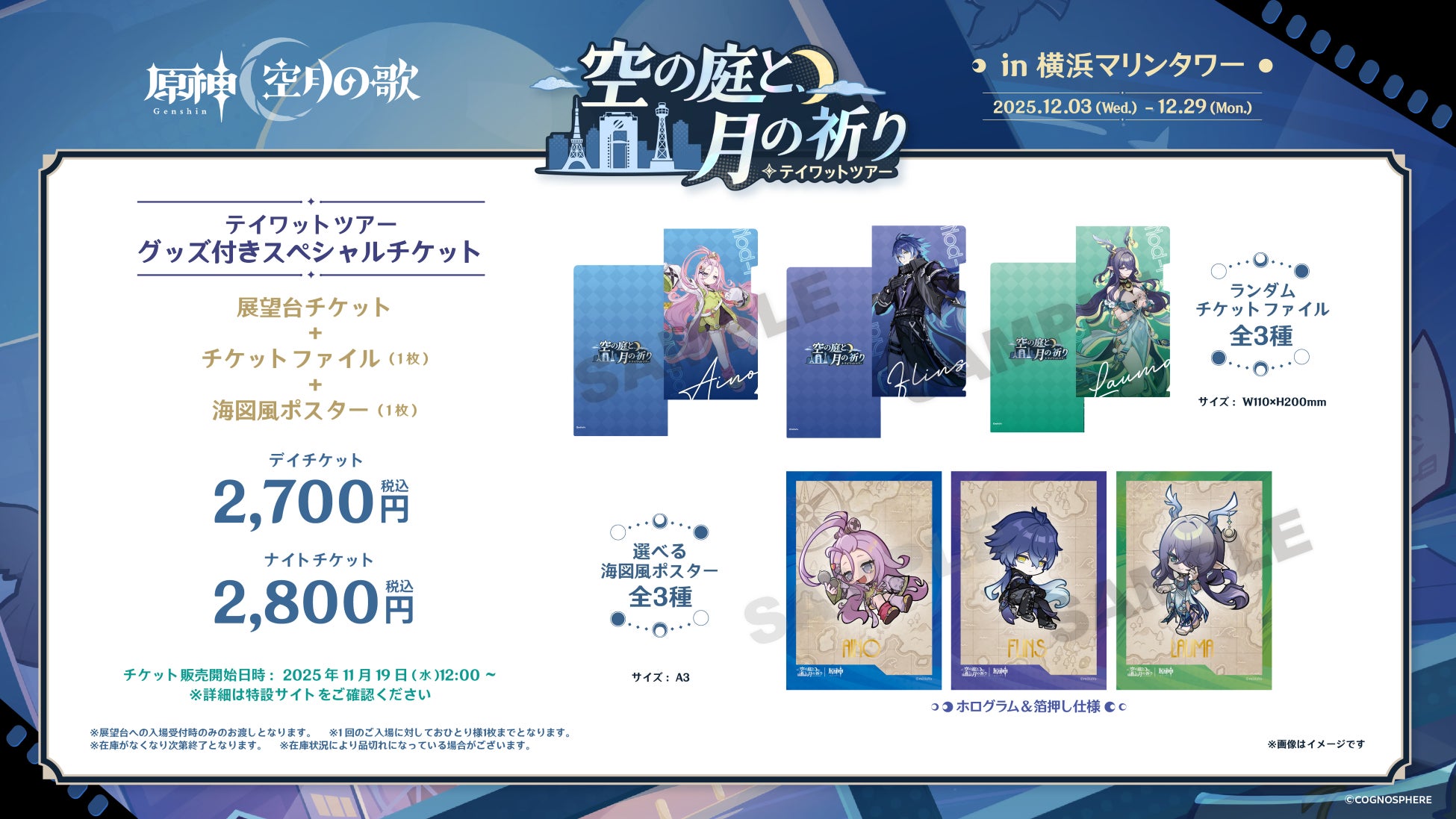 総合不動産企業リスト株式会社(本社:横浜市中区、代表:北見尚之)グループのリストプロパティーズ株式会社(本社:横浜市中区、代表:北見尚之)を中心とした共同事業体が運営を行う「横浜マリンタワー」と、株式会社COGNOSPHEREが運営するHoYoverseが配信するマルチプラットフォーム対応オープンワールドRPG『原神(げんしん)』は、「原神 テイワットツアー ‐空の庭と、月の祈り‐」を、2025年12月3日(水)から12月29日(月)まで開催いたします。