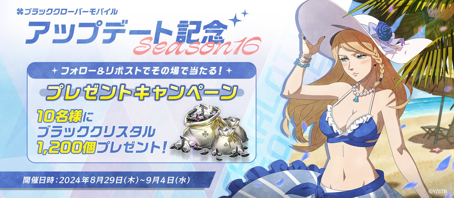 株式会社VIC GAME STUDIOS JAPAN(東京都新宿区、代表取締役:李 同校)は、テレビアニメ『ブラッククローバー』のアプリゲーム『ブラッククローバーモバイル 魔法帝への道 The Opening of Fate』(以下、ブラクロモ)において、本日8月29日(木)にアップデートを実施し、シーズン16が開始したことをお知らせいたします。