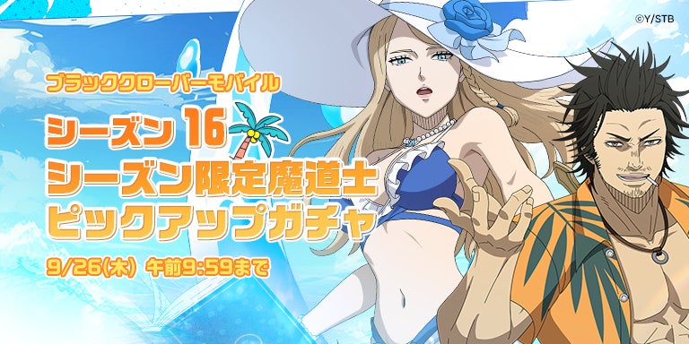 アプリゲーム『ブラッククローバーモバイル』シーズン16スタート!シーズン16限定魔道士「《水着》ヤミ」「《水着》シャーロット」新登場&メインストーリーChapter.15「滅亡か救国か」追加!