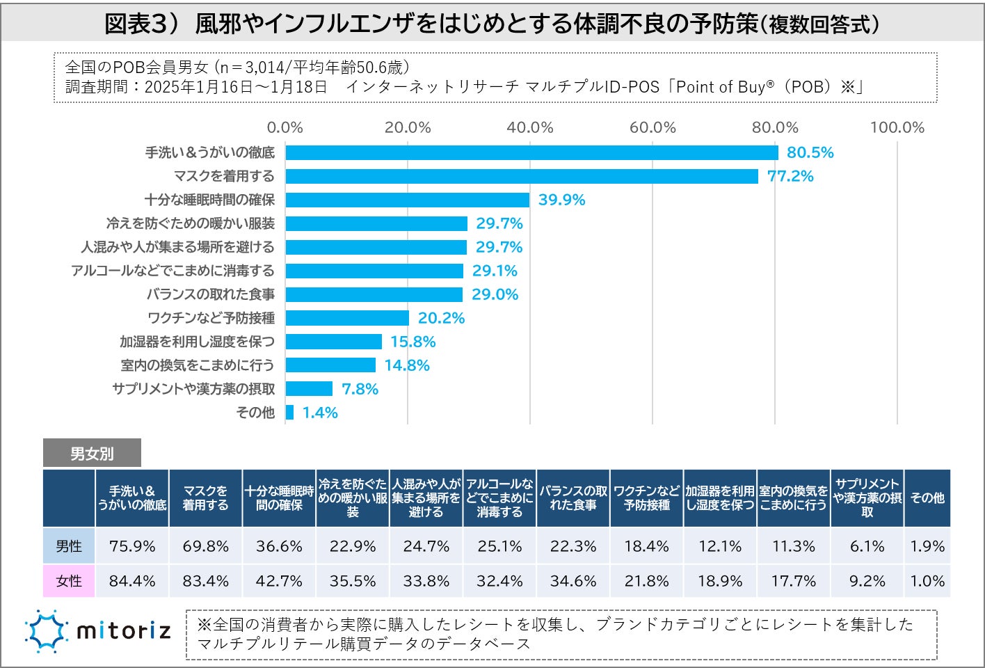 株式会社mitoriz(本社:東京都港区、代表取締役社長:木名瀬博)は、消費者購買行動データサービス「Point of Buy®(以下、POB)」の会員3,014人に「風邪・発熱に関する調査」を実施致しました。
