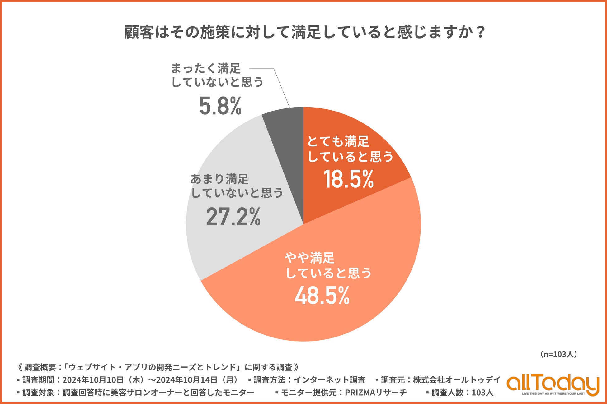 株式会社オールトゥデイ(本社所在地:埼玉県さいたま市)は、美容サロンオーナーを対象に、「ウェブサイト・アプリの開発ニーズとトレンド」に関する調査を実施しましたので、その結果を公表します。
