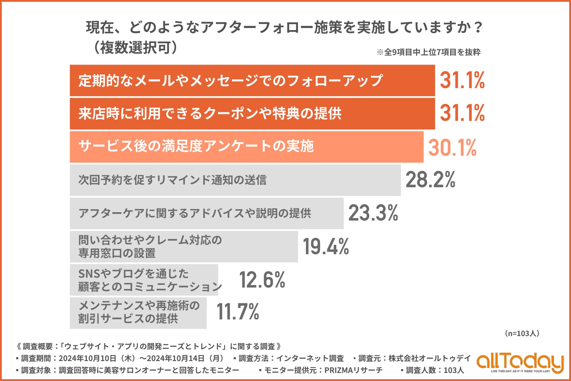 今回の調査で、美容サロンで実施しているアフターフォロー施策が明らかになりました。