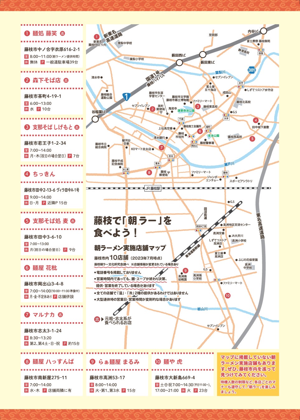 ・設 置 場 所:藤枝市観光案内所(藤枝市駅前1丁目1-2)、朝ラー各店舗