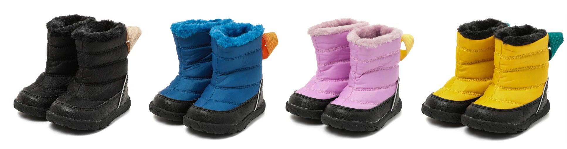 今年の防寒ブーツは全部で3種類。定番のベルトタイプから、脱ぎ履き簡単なノーベルトタイプまで、多様なラインナップをご用意しました。カラーバリエーションも豊富で、お子様にぴったりの一足がきっと見つかります。