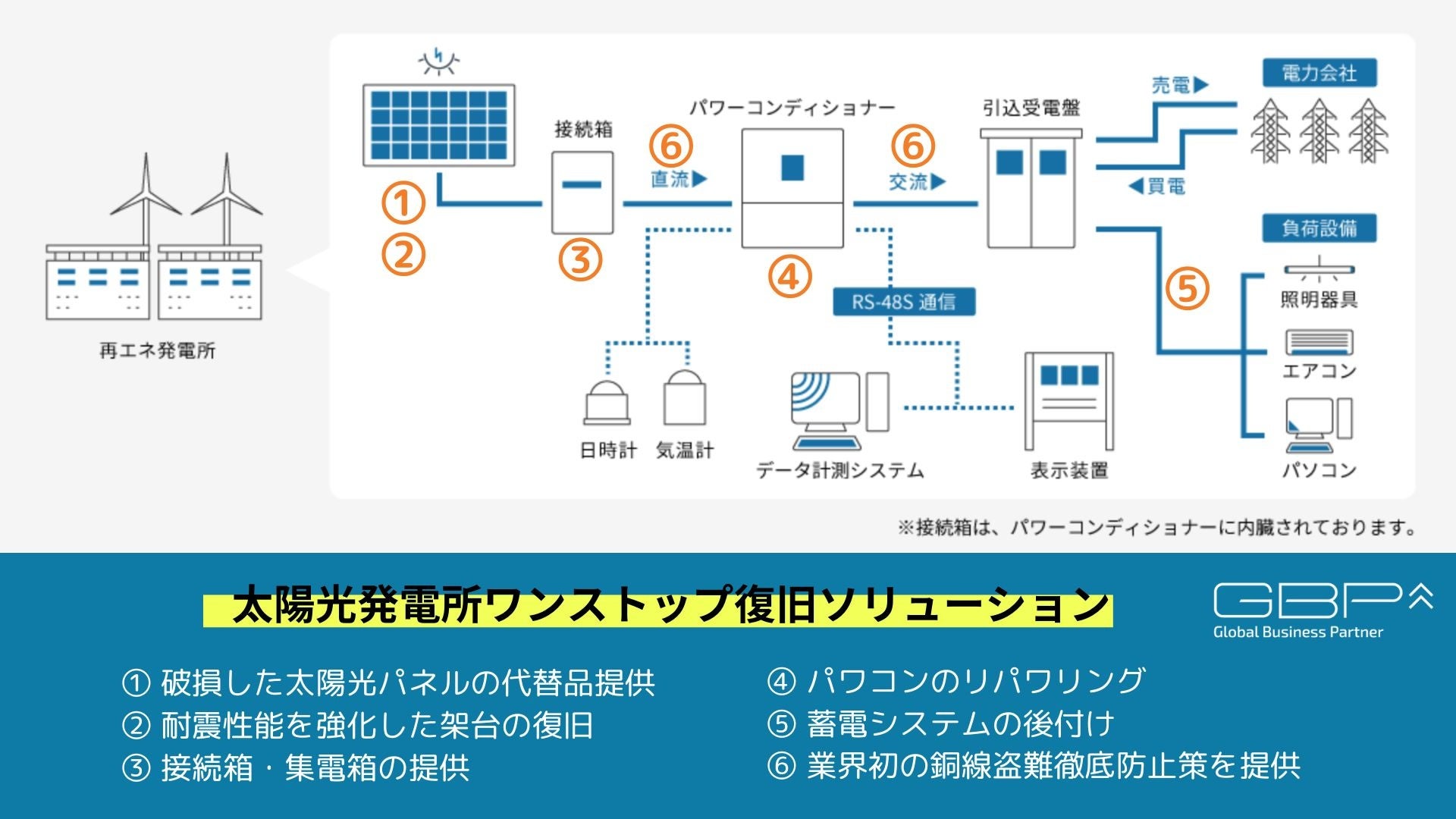GBPの太陽光発電所ワンストップ復旧ソリューションがパワーアップし、自然災害を受けた太陽光発電所のあらゆる課題・難題を解決し、早期復旧に貢献します。