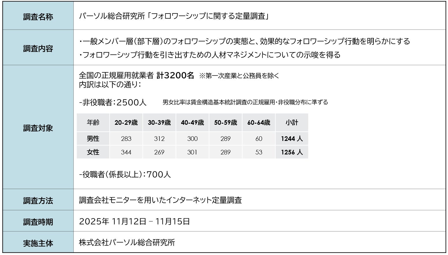 株式会社パーソル総合研究所(本社:東京都江東区、代表取締役社長:岩田 亮)は、全国の職場で働くメンバー層を対象に実施した「フォロワーシップに関する定量調査」の結果を発表いたします。