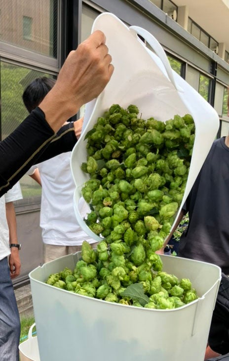 同プロジェクトは、学生が企業とのパートナーシップを学ぶ機会として、さまざまな取り組みを推進しています。今回は「関大万博部」の学生が中心となり、キャンパス内でホップの苗植え・収穫、醸造、味・瓶の選定やネーミング考案など行いました。ビール商品化の一連を通じて、環境保全、地域活性、人や企業とのパートナーシップの意義を学んでいます。
