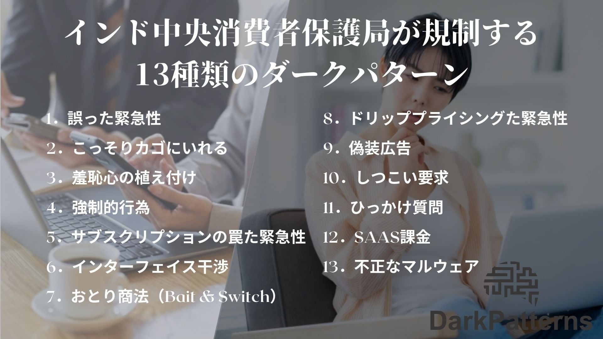 ■『インド中央消費者保護局が規制する13種類のダークパターン』の詳細