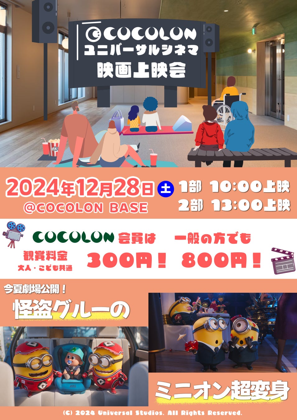 12月28日(土)、今年公開の映画「怪盗グルーのミニオン超変身」をCOCOLON BASEで上映