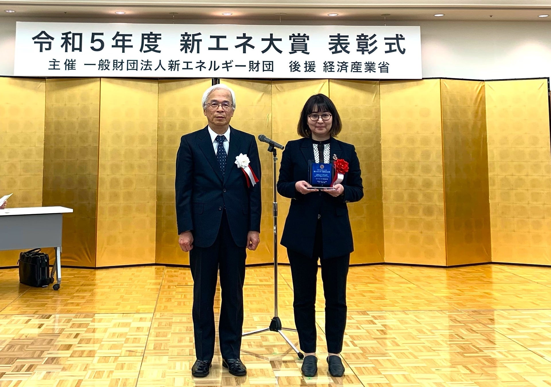 「新エネ大賞」は、経済産業省・資源エネルギー庁の委託により財団法人新エネルギー財団が実施するもので、新エネルギーの普及促進に貢献した企業や自治体、非営利団体を対象に、新エネルギーに係る商品および新エネルギーの導入や普及啓発活動などにおいて優れた事例を表彰するものです。