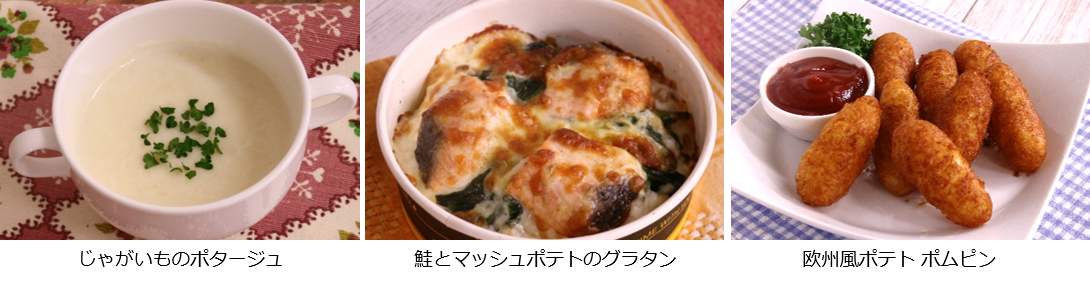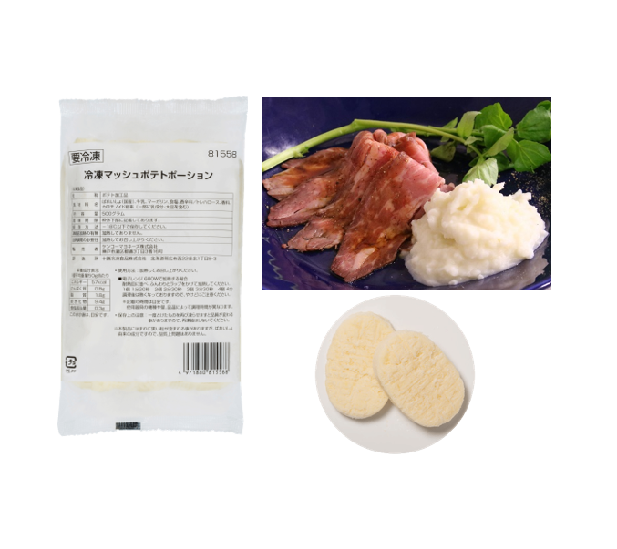 『冷凍マッシュポテトポーション』は、袋を開けるだけで使えて「時間短縮」になり、料理の素材として活用できる「素材系商品」です。社会問題となっている飲食店における人手不足の解消に役立つ商品として販売を開始しました。電子レンジで簡単に解凍することができ、誰でも手軽に安心して使えます。また、ポタージュやグラタンにもアレンジが可能で、メニューの幅が広がります。