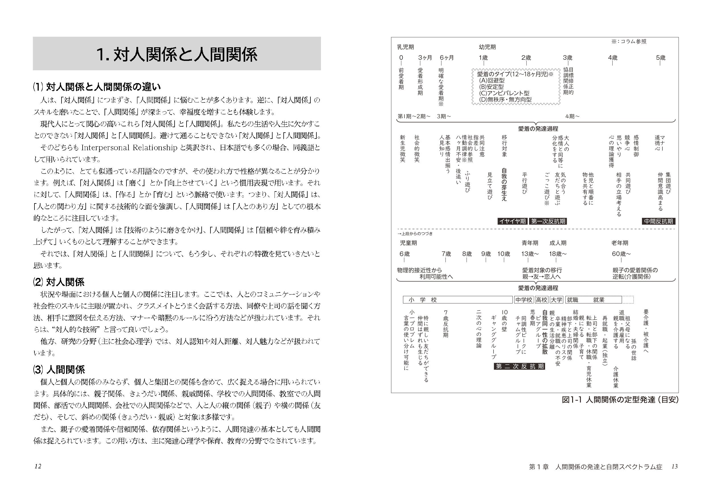 一般的に、人間関係は、親(養育者)との愛着関係に始まり、祖父母やきょうだいに広がり、先生や友だちへの信頼関係、そして、親しい人との恋愛関係、夫婦関係へと深まって、発展していきます。人の成長・発達とその生涯は、人間関係を抜きに考えられません。本書ではまず、この人間関係について、見て分かるように可視化をして、説明しています。