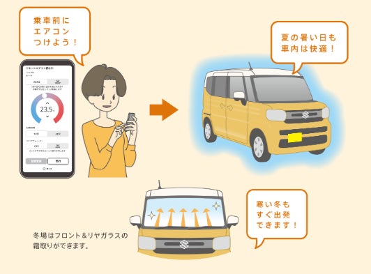 <例えば、スズキ「スペーシア」なら、遠隔エアコン操作が可能>