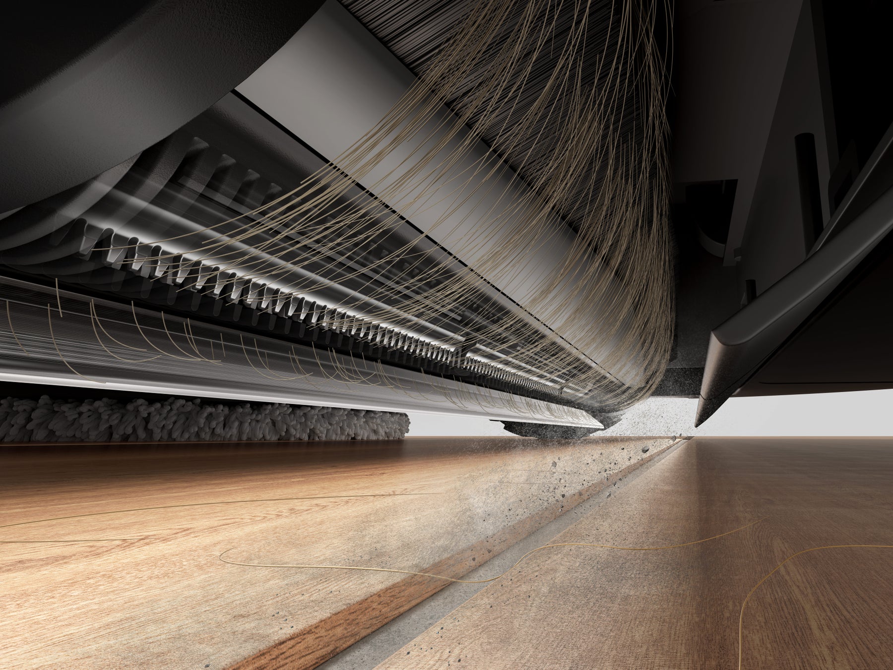 業界最強クラスの吸引力19,000Paにより、食べかすなどフローリングやカーペットの上の大きなゴミから、ホコリや髪の毛などの小さなゴミまで難なく吸い取ります。吸引力が高いため、壁際やコーナーの汚れもしっかり除去して隅々まできれいに仕上げることができます。また、空気力学に基づいた設計により、騒音も低減しています。