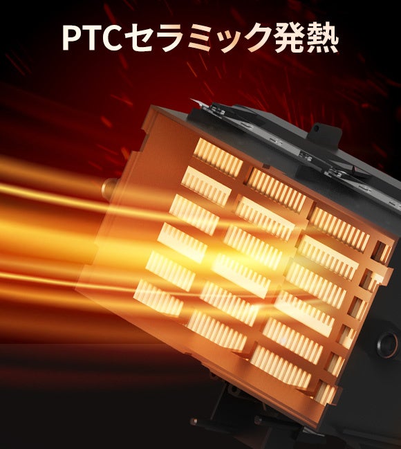 本製品は断熱材(PTCセラミック発熱体)を使用しています。セラミックは高い熱伝導性を持ち、電気を通じて迅速に加熱されるため、暖房装置が非常に効率的に温風を発生できます。そのため、スイッチを入れてから瞬時に温風を吹き出し、急な寒冷さに対処できます。