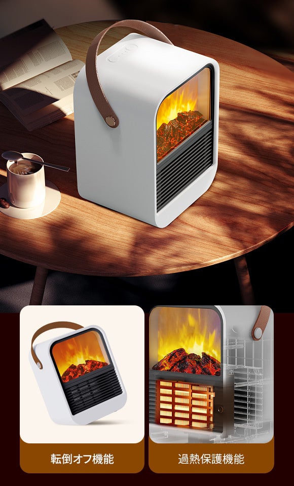 1秒程度で部屋を素早く暖め、快適な環境を提供することができます。ポータブル性と安全性も魅力的です。高さはわずか20cmとコンパクトなので、デスクに置いて使用することができます。過熱や転倒時の自動停止機能が備わっているため、安全に使用できます。さらに、自然な炎のゆらぎで心地よい癒しを提供します。
