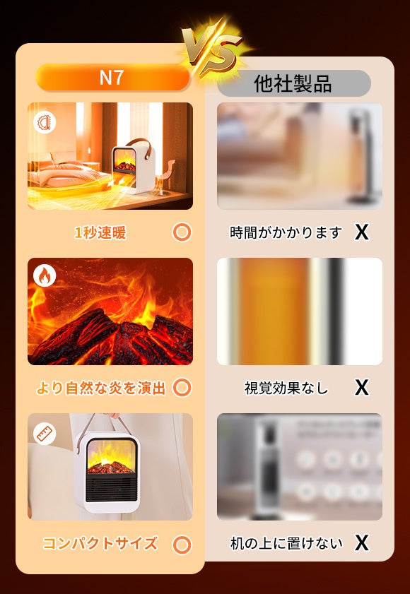 1秒速暖!ポータブル省エネ型ファンヒーター「N7」