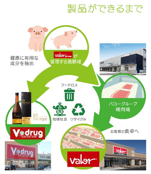 本製品はバローグループが管理する養豚場で排出される食肉から健康に有用な成分を抽出し、「人々の健康で幸せな暮らしに貢献する」というコンセプトのもと、美容成分を追加配合して健康食品として開発した商品です。本製品は原料の抽出、配合、充填まですべて岐阜県・愛知県の企業と協業して行い製造しております。