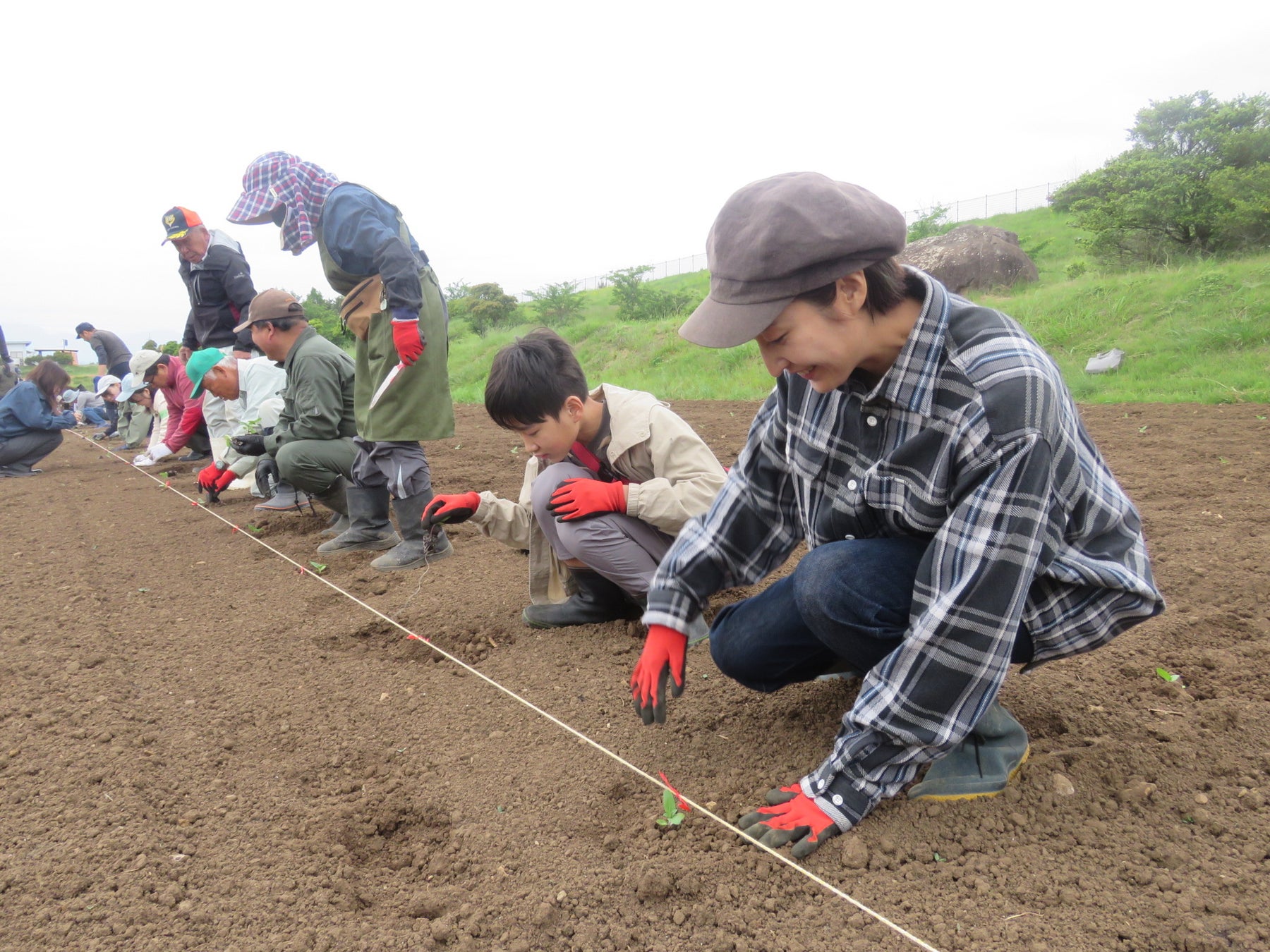 初回作業に約70名が参加、地域住民との協働で4,000本のひまわりを植え付け