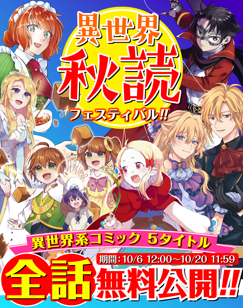 株式会社コアミックス(東京都武蔵野市)は、10月6日(金)よりWEBゼノン編集部にて「秋の読書フェスティバル」を開催します。対象のゼノンコミックス異世界5作品全話を無料公開致します。